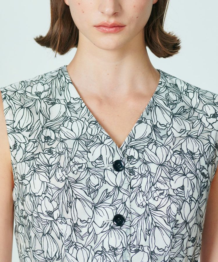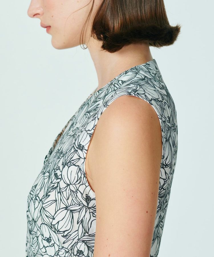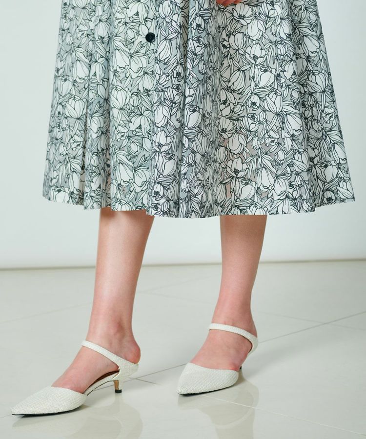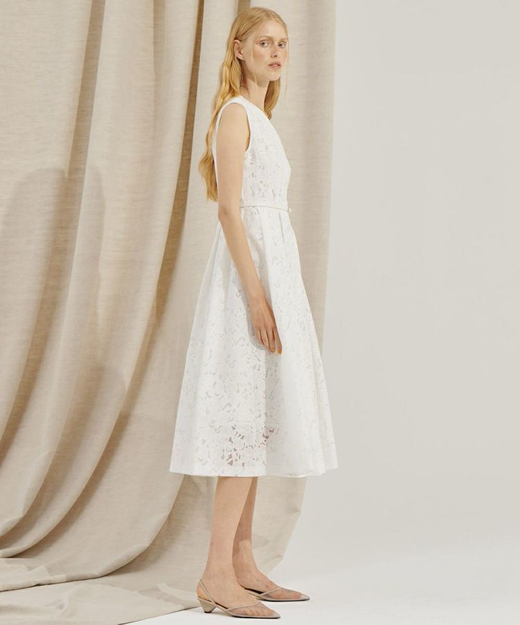 首元やデコルテを美しく見せてくれる、Vネックラインが特徴になったワンピース。プルメリアをモチーフにしたレースにシアー感をプラスし、軽やかで涼しげな雰囲気に仕上げました。ふんわりと広がるスカートが体型を拾いすぎず、ウエストや太ももを自然にカバーしてくれるのもうれしいポイント。ウエストの高め位置に細ベルトを合わせることで、全身にメリハリが出るのも魅力です。