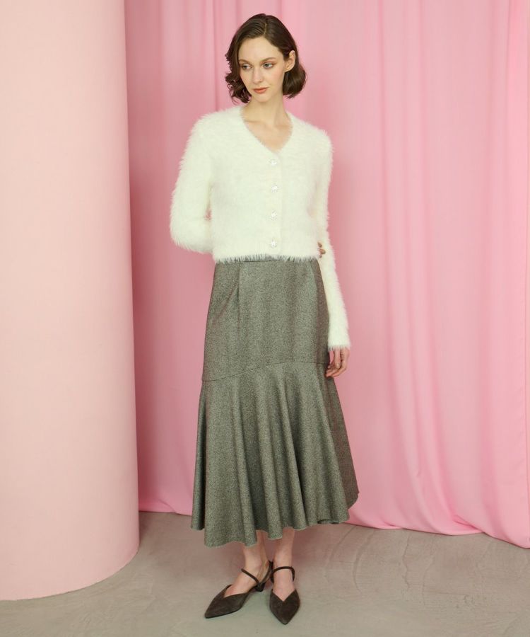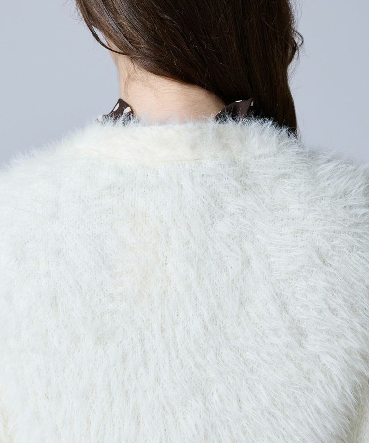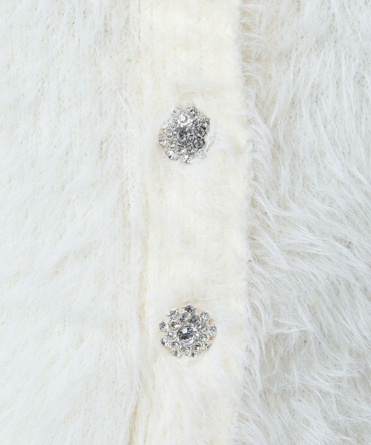 毛足の長いフェイクファーが華やかで存在感を放つカーディガン。羽織るだけでスタイリングをクラスアップしてくれる主役級アイテムです。フロントにはビジューをあしらったボタンを採用し、エレガントなきらめきをプラス。フェミニンな雰囲気を引き立てるホワイトと、シックで大人っぽいブラックの2色展開でご用意しています。
