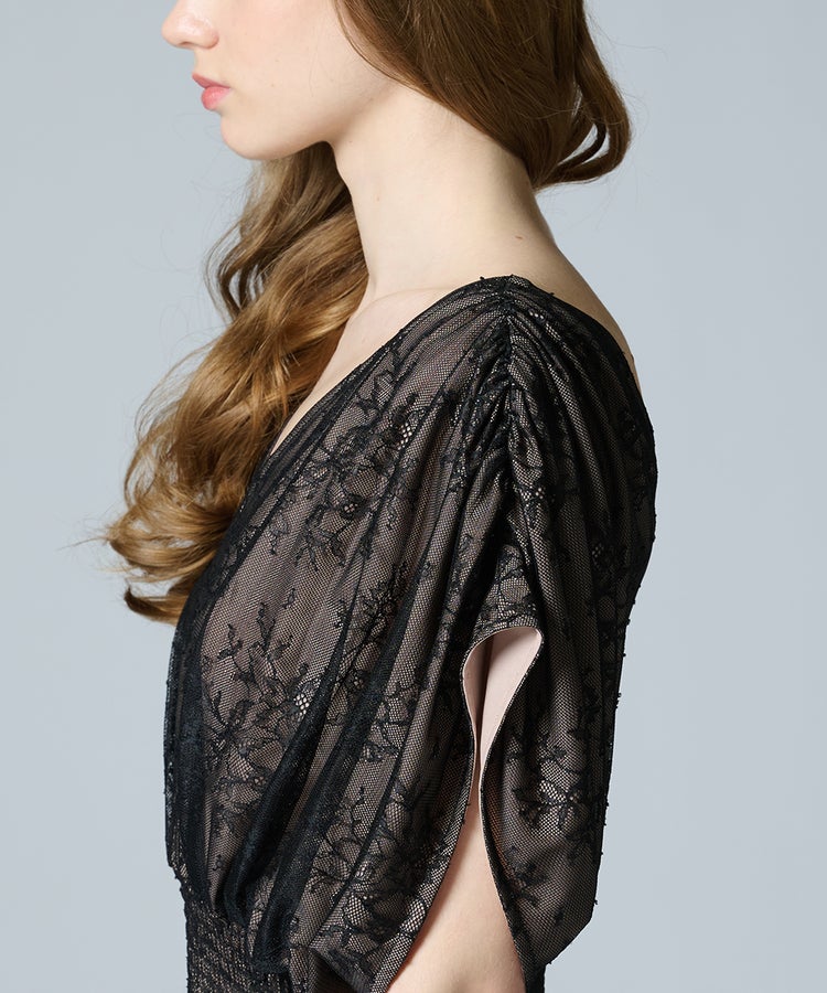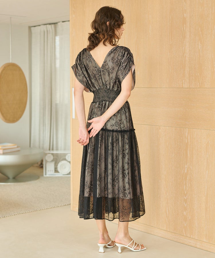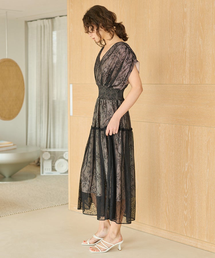 CORCOVADO / シャーリングジャガード チュールレースドレス