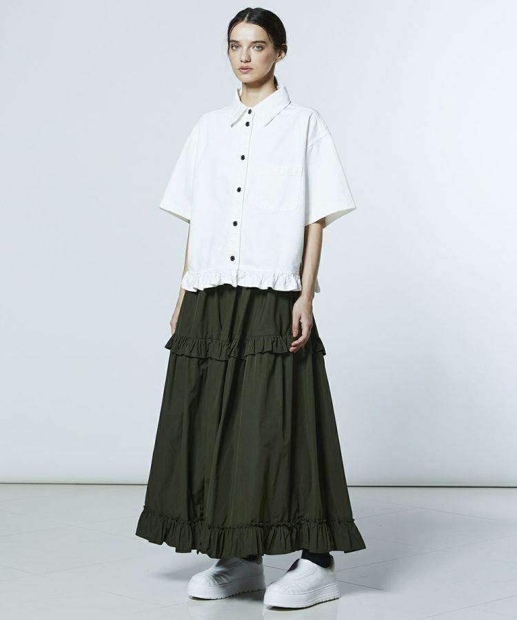 コットン100%の柔らかな肌触りが心地よいデニムシャツ。裾にあしらったフリルがカジュアルになりすぎないバランスを生み、大人の可愛らしさをさりげなく演出します。カラーは爽やかなオフホワイトと、ヴィンテージ感のあるインディゴの2色展開。襟付きデザインがきちんと感をプラスし、大人かわいいカジュアルスタイルを楽しめる一枚です。