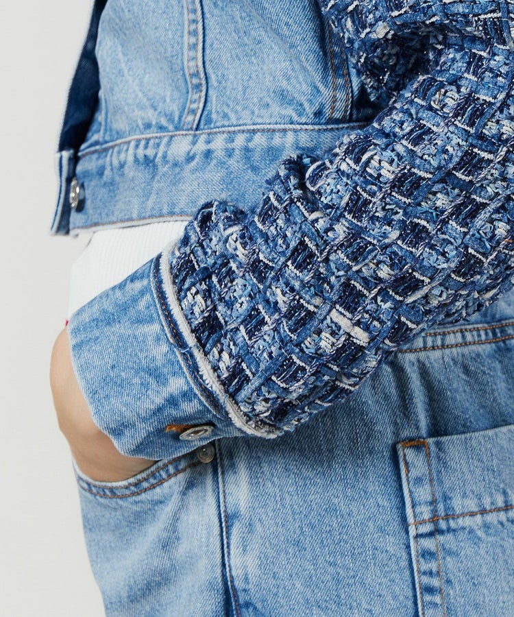 デニムで作ったツィード生地をドッキングした、唯一無二のデザインが光るジャケット。ジャパンクオリティのクラフト感が漂いながらも、ノーカラーのショート丈にすることでファッショナブルに仕上げました。また、デニムなのでどんなトップスにも合わせやすいのが魅力。デニムのコーデに合わせて、ワンランク上のデニム×デニムの着こなしを楽しむのもおすすめです。