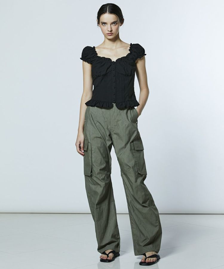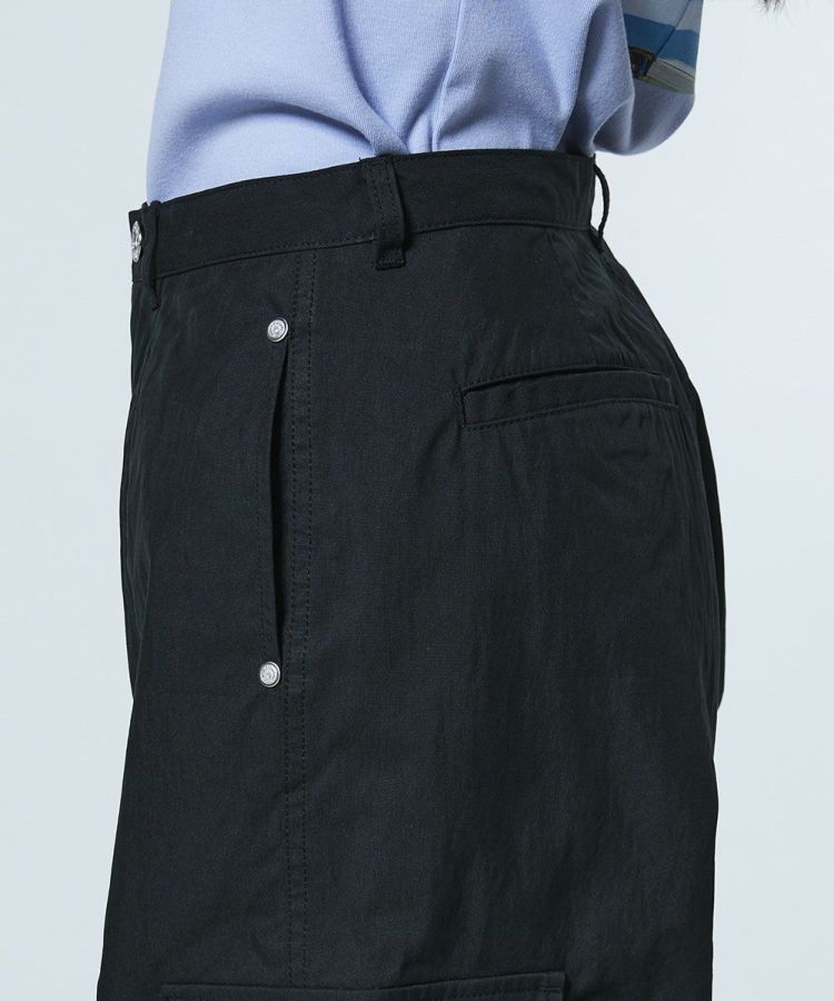 程よくゆとりを持たせたストレートシルエットで、きれいめにも穿きこなせるカーゴパンツ。ワッシャー加工を施すことで、ナチュラルでこなれた風合いに仕上げました。サイドのポケットがさりげないデザインアクセントに。定番のカーキと使い勝手の良いブラックの2色展開で、トップスを選ばず幅広いスタイリングに活躍する一本です。
