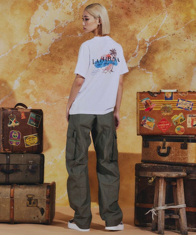 ナチュラルなシャリ感が魅力的なTシャツ。背面には大胆にリゾート調のグラフィックをあしらい、後ろ姿まで抜かりないデザインに仕上げました。フロントの胸元にはブランドの頭文字を立体的に施し、さりげないアクセントをプラス。ヴィンテージTシャツのような風合いで、こなれ感を演出してくれる一枚です。