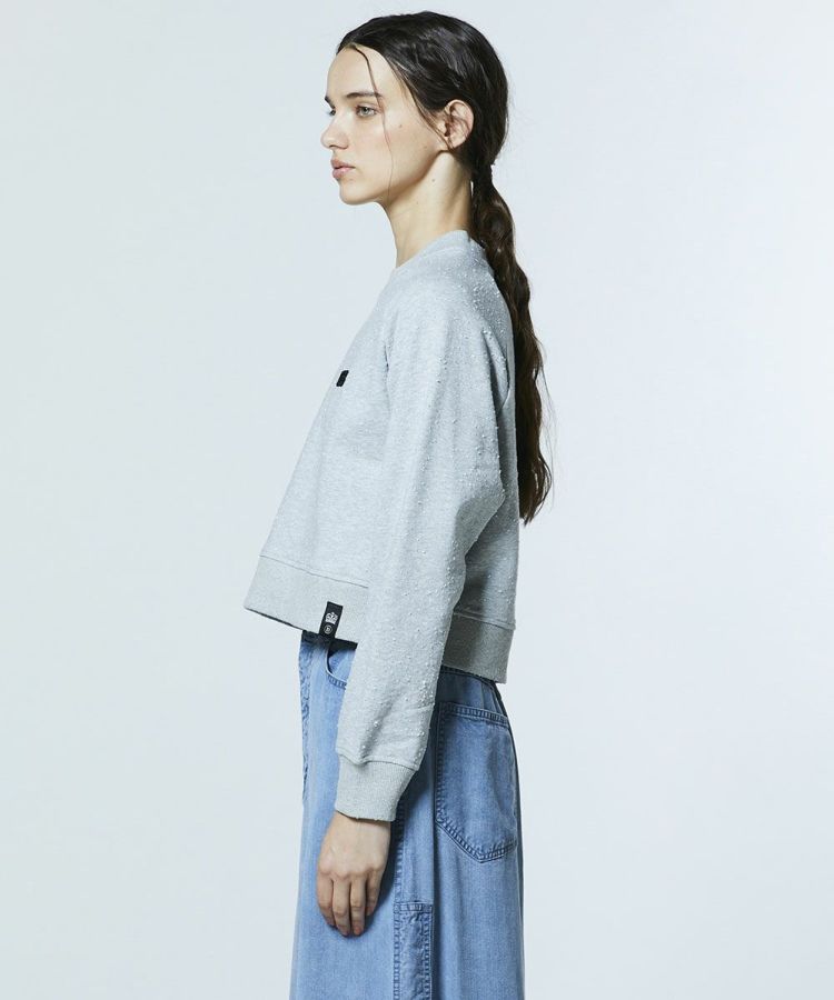 ネップによる独特なムラ感が表情豊かなスウェット。ショート丈のシルエットで、合わせるボトムスを選ばずバランスよく着こなせます。カラーは着回ししやすいオフホワイトとライトグレーの2色展開。カジュアルなパンツはもちろん、柄物ボトムスとも好相性で、幅広いスタイリングを楽しめる一枚です。