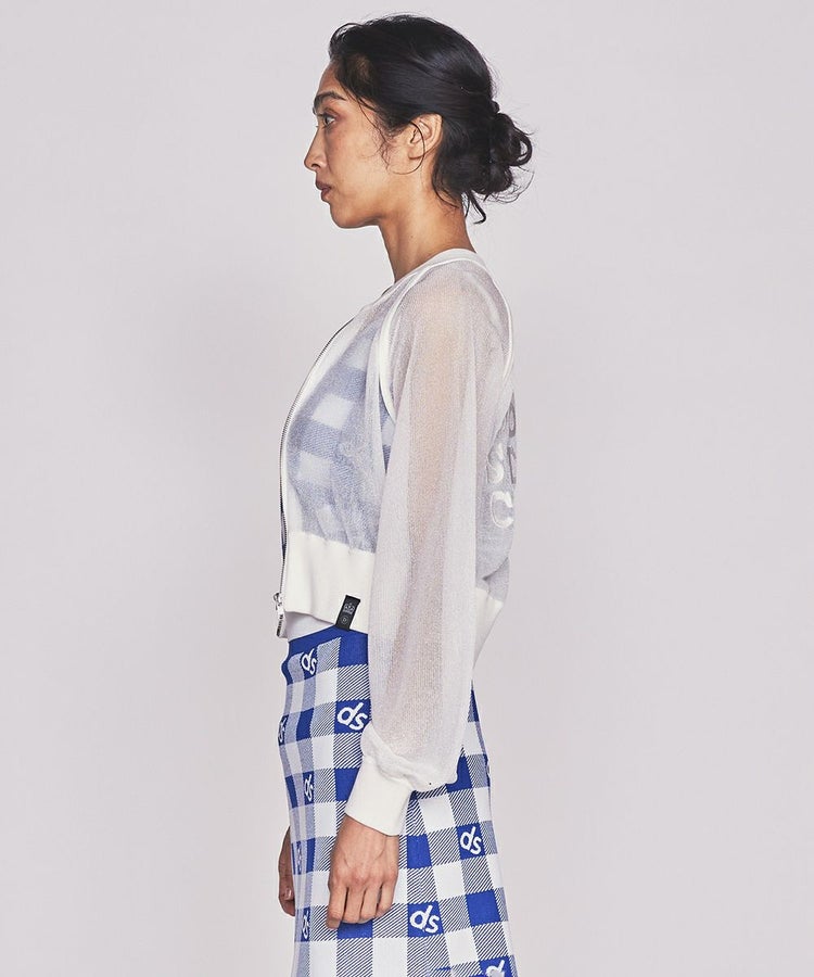 夏におすすめの、女性らしく着られるスタジャン。片畦で柔らかくエアリーに編み上げ、また、透け感がフェミニンな印象です。バックのロゴがさりげない遊び心をプラス。Tシャツやタンクトップにラフに羽織るだけでサマになるので、室内の冷房対策や日焼け防止にも活躍。ショート丈なのでコーディネートしやすく、スタイルよく見えるのもうれしいポイントです。