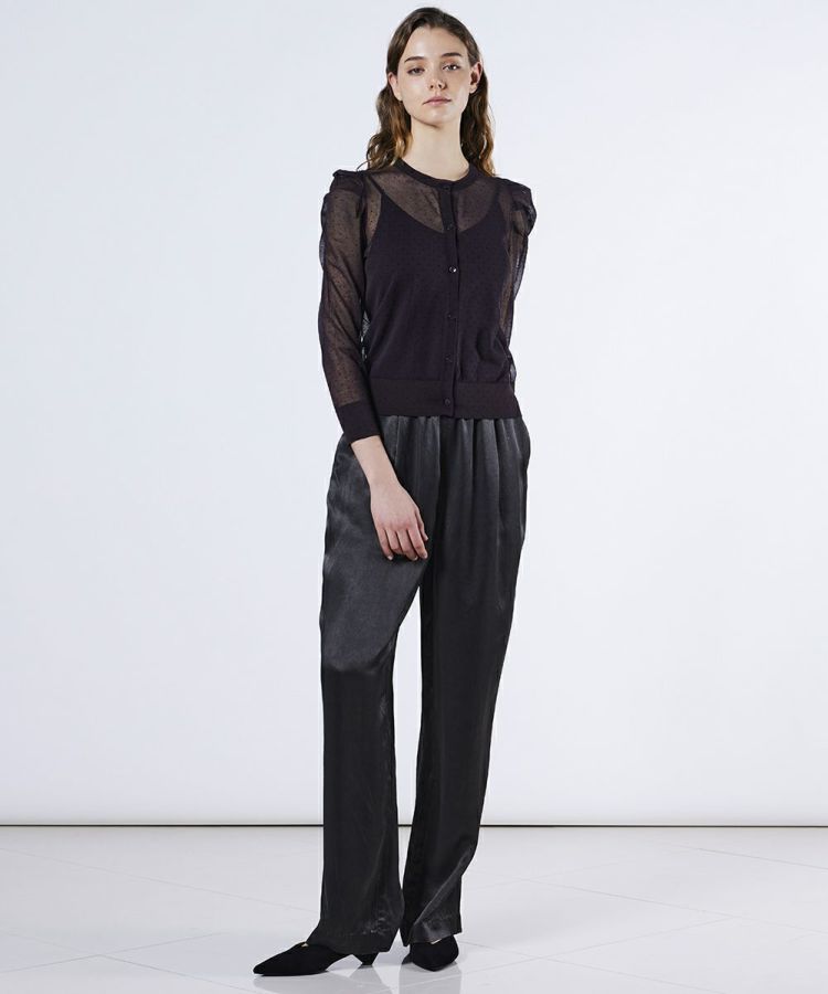 程よく透けるシアーな質感がセンシュアルなムードのカーディガン。シャリっとした清涼感のある風合いで、暑い季節でも快適な着心地を叶えます。さりげなく散りばめたドット柄と、ふんわりとしたパフスリーブが、女性らしさを引き立てるフェミニンなアクセントに。日焼け防止や冷房対策にも活躍する一枚です。