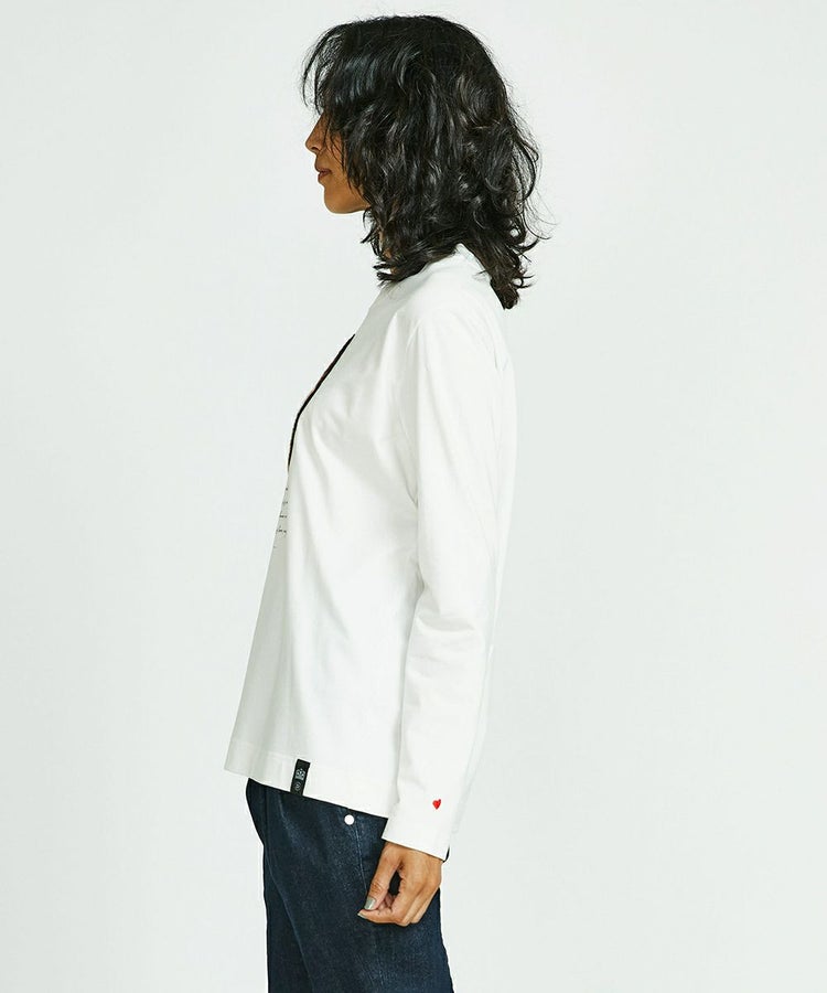 コットン100%で心地よい肌触りの長袖Tシャツ。フロントにはダブスタの人気キャラクターの後ろ姿ベアを、スケートボードで遊ぶユーモアたっぷりのワッペンで表現しました。コンパクトなシルエットもポイントで、大人カジュアルに着られるのが魅力的。コーディネートを選ばないので、着まわし力も抜群です。バックや袖にもプリントを施し、360°どこから見てもかわいい一枚です。