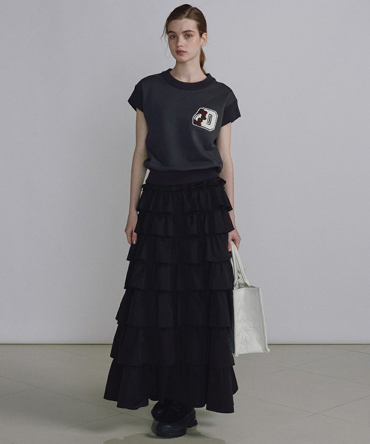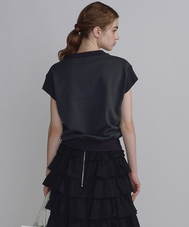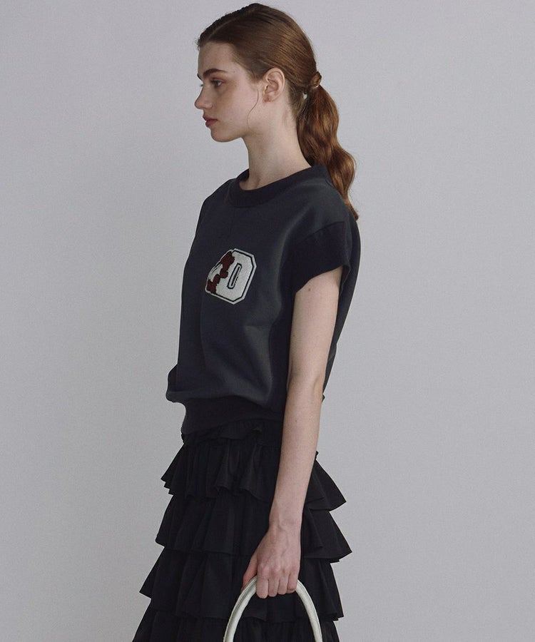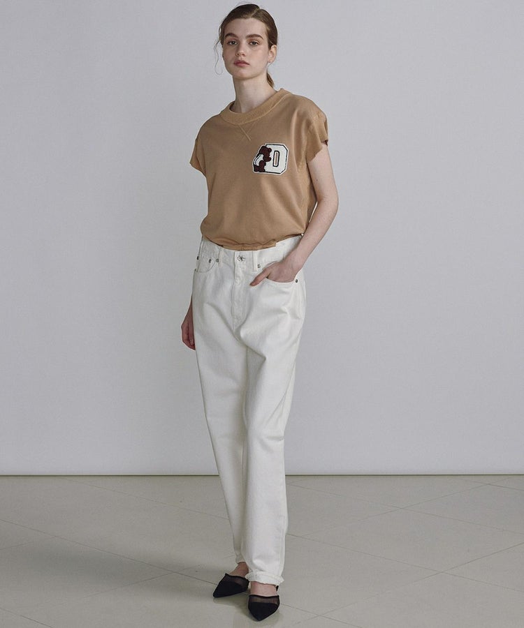 しっかりとした肉感のある裏毛で作った半袖トップス。胸元にダブスタオリジナルの後ろ姿のクマワッペンをあしらい、アクセントにしています。コンパクトなシルエットに加えなめらかでハリのある表面感のため、裏毛でもカジュアルになりすぎないのが魅力的。フレンチスリーブ丈に設定した袖が腕のラインをきれいに見せてくれます。襟などの太めリブもアクセントに。