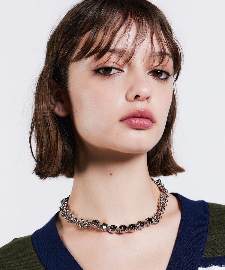 フィレンツェから取り寄せた、ゴージャスなラインストーンを組み合わせたネックレス。12爪仕様で、ほかにはない美しさが際立ちます。また、これだけデコラティブでありながら引っ掛かりがほとんどないのもうれしいポイントです。日本ではなかなか見られないチェーンも魅力的。コーディネートにエッジーな輝きをプラスしてくれるアイテムです。