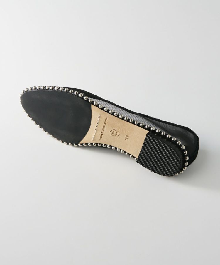メッシュデザインが足元に程よい抜け感をプラスするパンプス。フラットタイプで、長時間履いても疲れにくい快適な履き心地が魅力です。シルバーのボールチェーンがクールなアクセントとなり、スタイリッシュな印象に。モード感がありながらも涼やかで、幅広いスタイリングに馴染む一足です。