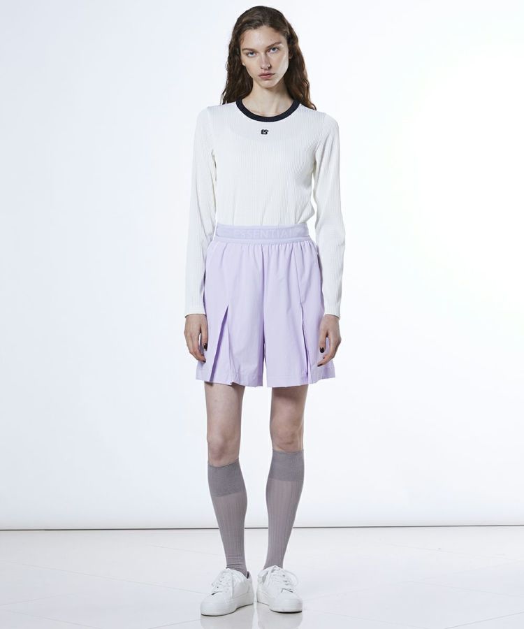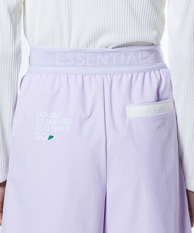 鈴木紗理奈とのコラボレーション第2弾として登場したキュロットパンツ。軽やかで動きやすいストレッチタフタ素材を使用し、ソフトな手ざわりとさらっとした清涼感が魅力です。また撥水、接触冷感、紫外線防止と夏に嬉しい機能を備えています。ウエストはゴム仕様で、リラックス感のある快適な履き心地を実現。バックスタイルにはプリントと刺繍、さらにパイピングポケットを施しどの角度から見ても抜かりのないデザインに仕上げました。