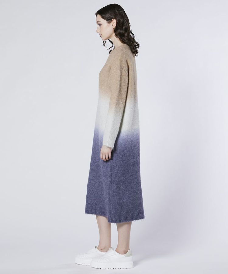 ベージュからダークグレーになるグラデーションが美しいワンピース。シンプルなデザインに表情を添え、1枚で存在感のある着こなしを叶えます。ゆとりのあるシルエットとロング丈が、抜け感のある大人のリラックススタイルを演出。シーズンレスで着回せる、頼れるアイテムです。