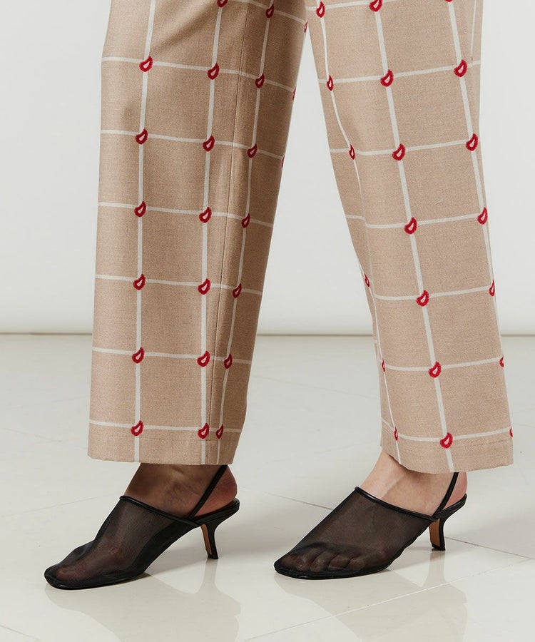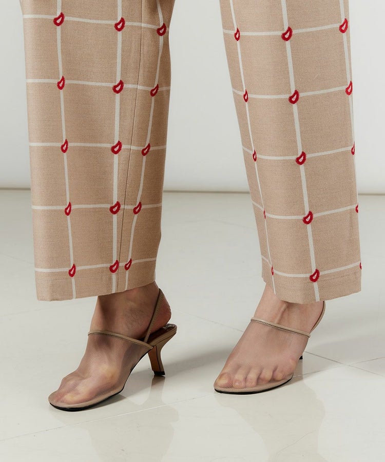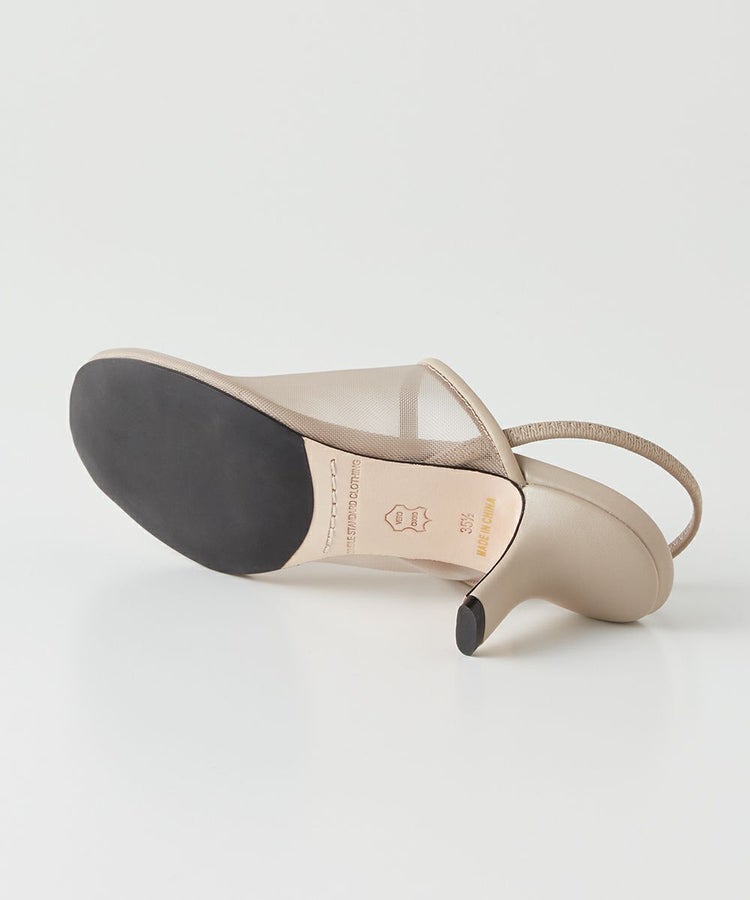 シアーなメッシュ素材で作ったミュール。春夏らしい涼しげで軽やかな足元を演出します。また、透け感があるためセンシュアルなムードもたっぷり。パンツスタイルに取り入れてメリハリを出すのがおすすめです。ヒールは高すぎないピンにすることで、美脚効果と歩きやすさを両立。サイドやバックから見た姿もきれいです。