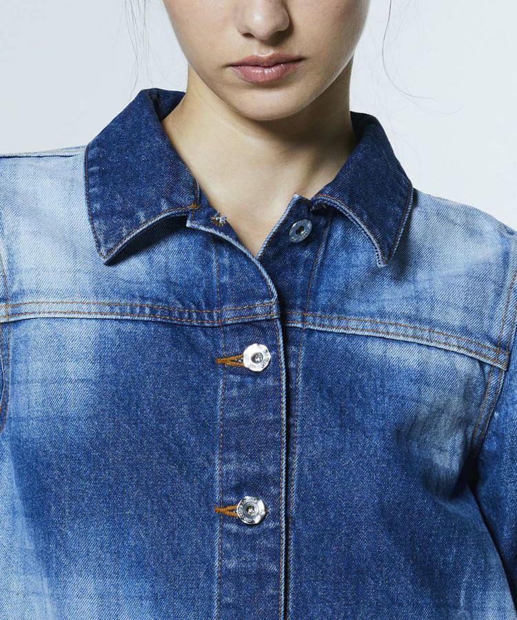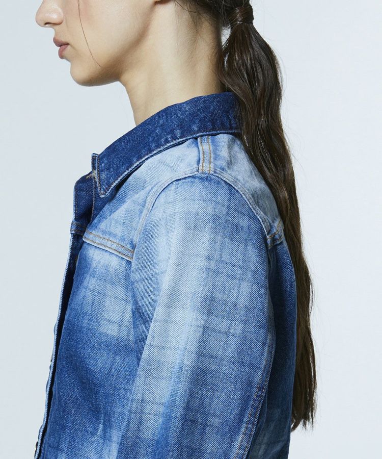 独特なムラ感とさりげないチェック柄が目を惹く、個性あふれるデニムシャツ。弱テンションで織り上げた生地が、ヴィンテージライクな風合いをいっそう引き立てます。ショート丈のシルエットで全体のバランスが取りやすいのも魅力。同素材のパンツ(型番:0206351261)と合わせれば、洗練された大人のセットアップスタイルが完成します。