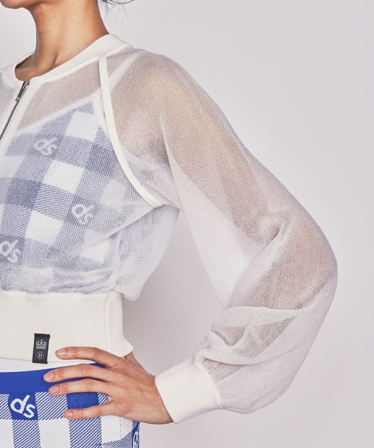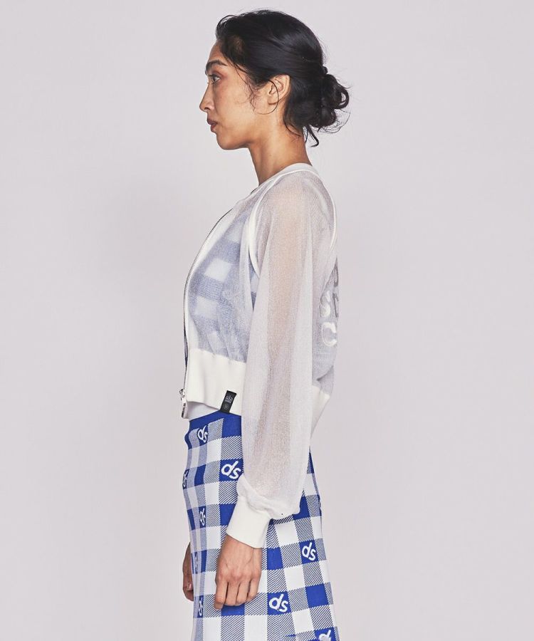 夏におすすめの、女性らしく着られるスタジャン。片畦で柔らかくエアリーに編み上げ、また、透け感がフェミニンな印象です。バックのロゴがさりげない遊び心をプラス。Tシャツやタンクトップにラフに羽織るだけでサマになるので、室内の冷房対策や日焼け防止にも活躍。ショート丈なのでコーディネートしやすく、スタイルよく見えるのもうれしいポイントです。