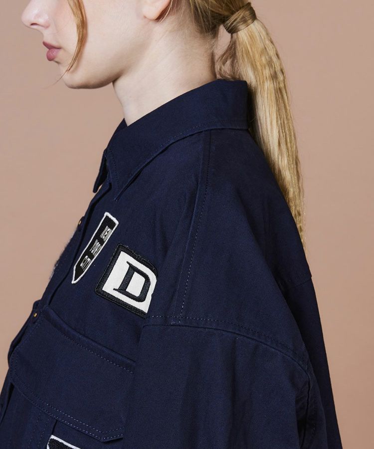 アメリカンヴィンテージなムード漂う、存在感抜群のミリタリージャケット。ユーズド感が出るように特殊な染色方法を施し、味わい深い風合いを表現しました。全体にあしらったオリジナルワッペンがカジュアルさをプラス。デニムのようなタテ落ち感が楽しめるため、経年変化による表情の変化も楽しめます。