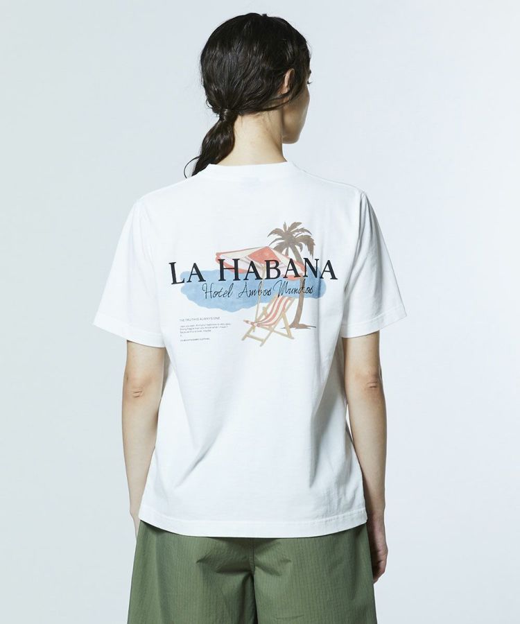 ナチュラルなシャリ感が魅力的なTシャツ。背面には大胆にリゾート調のグラフィックをあしらい、後ろ姿まで抜かりないデザインに仕上げました。フロントの胸元にはブランドの頭文字を立体的に施し、さりげないアクセントをプラス。ヴィンテージTシャツのような風合いで、こなれ感を演出してくれる一枚です。