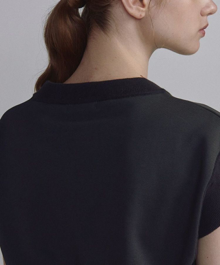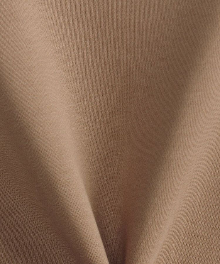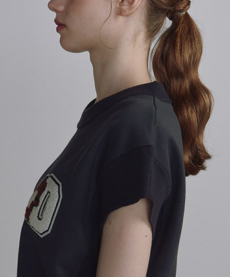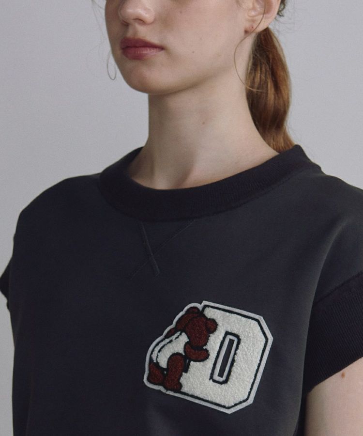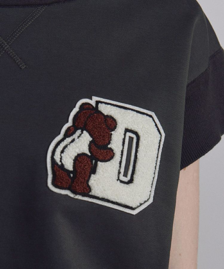 しっかりとした肉感のある裏毛で作った半袖トップス。胸元にダブスタオリジナルの後ろ姿のクマワッペンをあしらい、アクセントにしています。コンパクトなシルエットに加えなめらかでハリのある表面感のため、裏毛でもカジュアルになりすぎないのが魅力的。フレンチスリーブ丈に設定した袖が腕のラインをきれいに見せてくれます。襟などの太めリブもアクセントに。