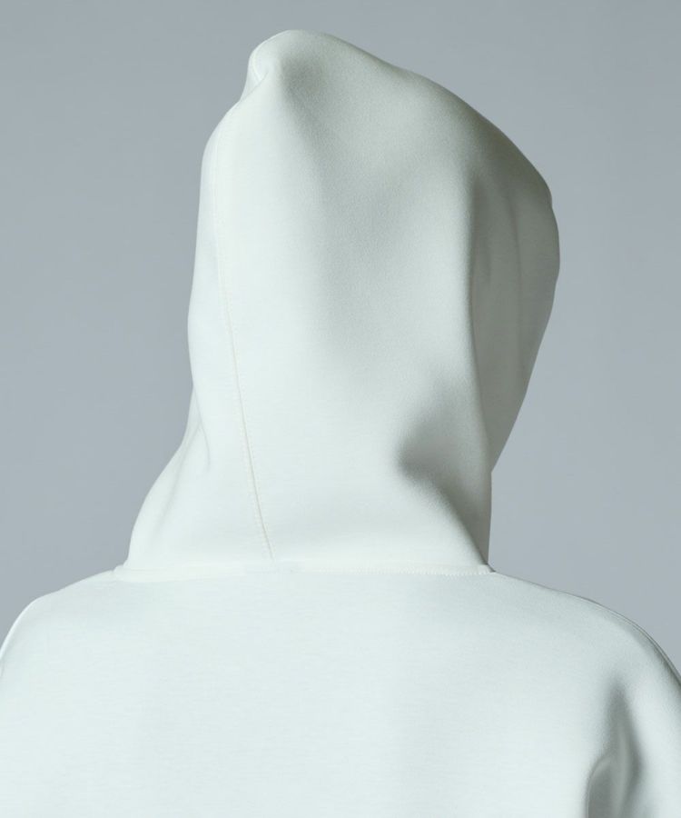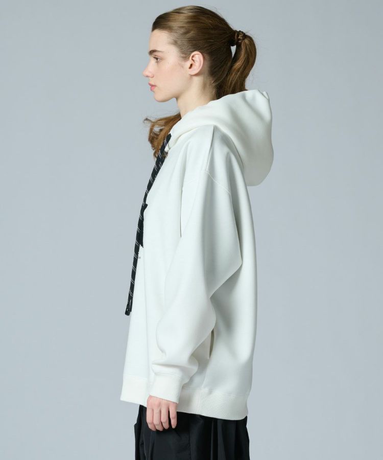 シンプルながらも着回しやすいダンボールフードパーカー。フロントには星の刺繍をあしらい、さりげないアクセントを添えました。バックにはブランドのロゴをあしらい、後ろ姿も抜かりないデザインに。カラー展開はオフホワイトとブラックの2色で、パンツやスカートなどボトムスを選ばず使いまわせるアイテムです。