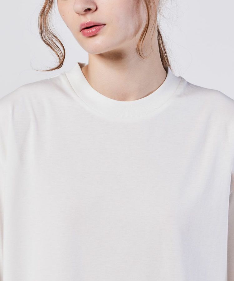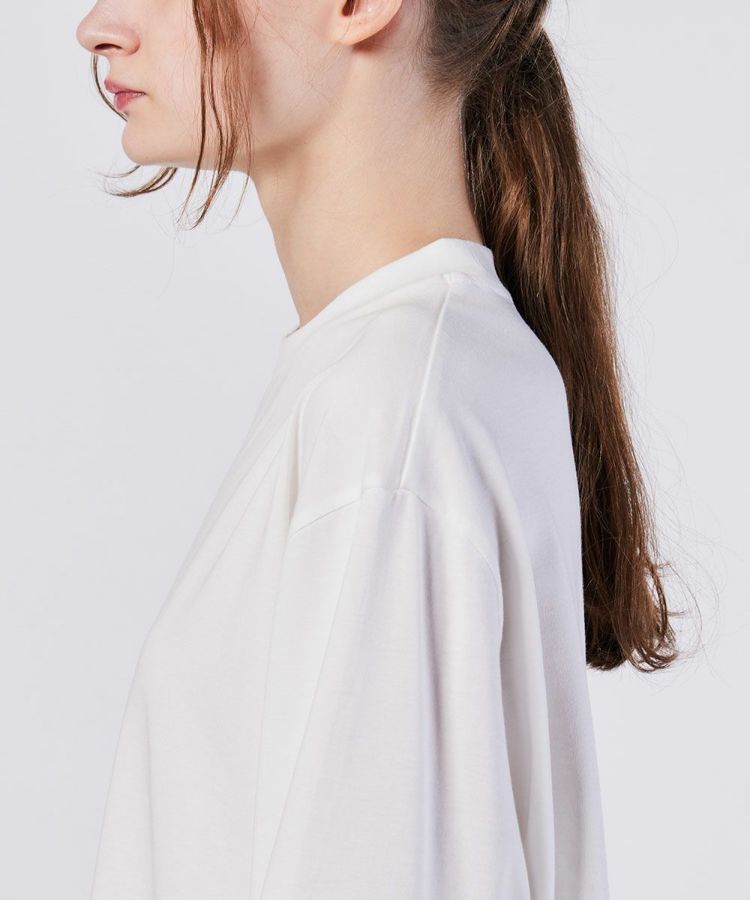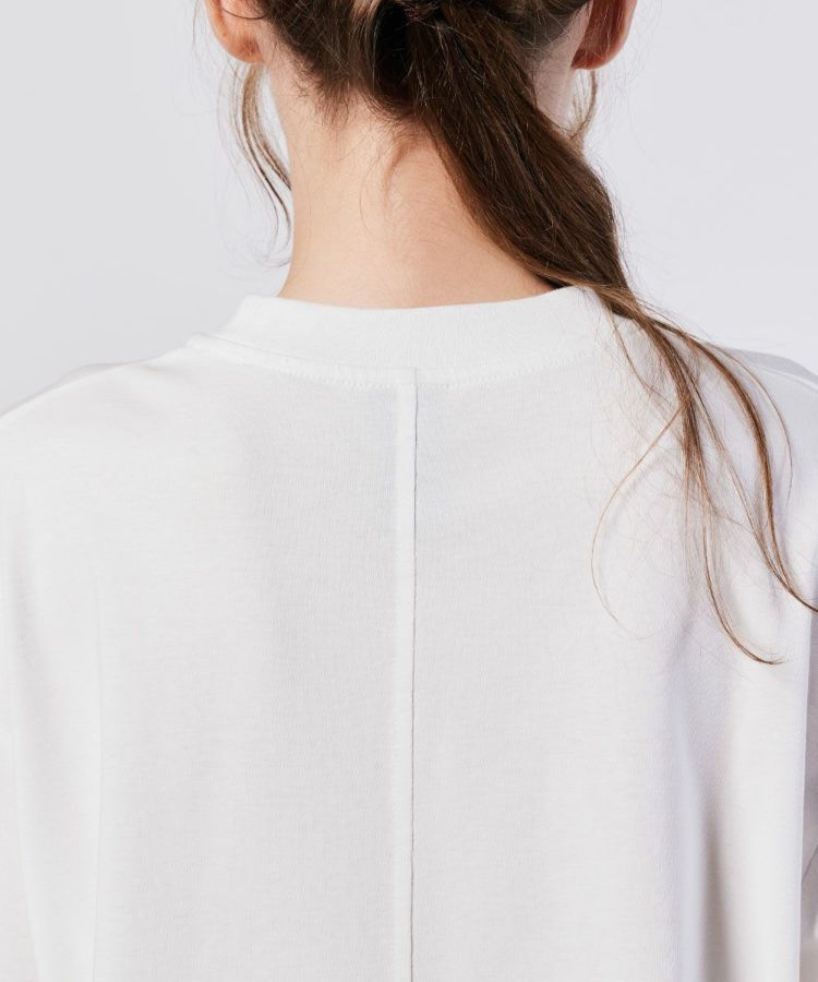 コットン100%で作った、肌触りの良いTシャツ。フロントからバックまでひと繋ぎになったロゴプリントがアクセントになり、シンプルなコーディネートでもぐっとデザイン性が出る一枚です。ゆったりとしたリラクシンなシルエットもポイント。ぜひボトムにインせず、マニッシュに着こなしを楽しんでください。