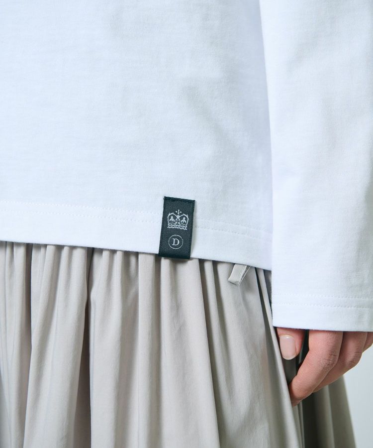 オフショルダーで女性らしいムードを演出できるトップス。体型をさりげなくカバーでき、ロンT感覚で着られるオーバーサイズなシルエットがポイントです。フリルのディテールながらも、コットン素材なので甘さは控えめ。スカートはもちろん、パンツにラフに合わせても大人かわいくキマる一枚です。裾のブランドタグがさりげないアクセントになっているので、アウトして着るのもおすすめ。