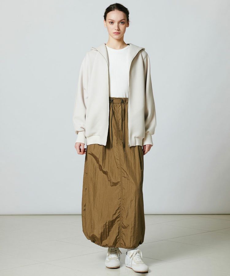 ゆったりとしたシルエットに仕上げたパーカー。大きめのフードがラフでこなれた印象を与えます。ストレッチ性に優れつつ、なめらかな表面感の生地を使用しているため、カジュアルになりすぎず、きれいめに着られるのが魅力。Tシャツにさっと羽織るだけで大人カジュアルスタイルが完成する優れものです。