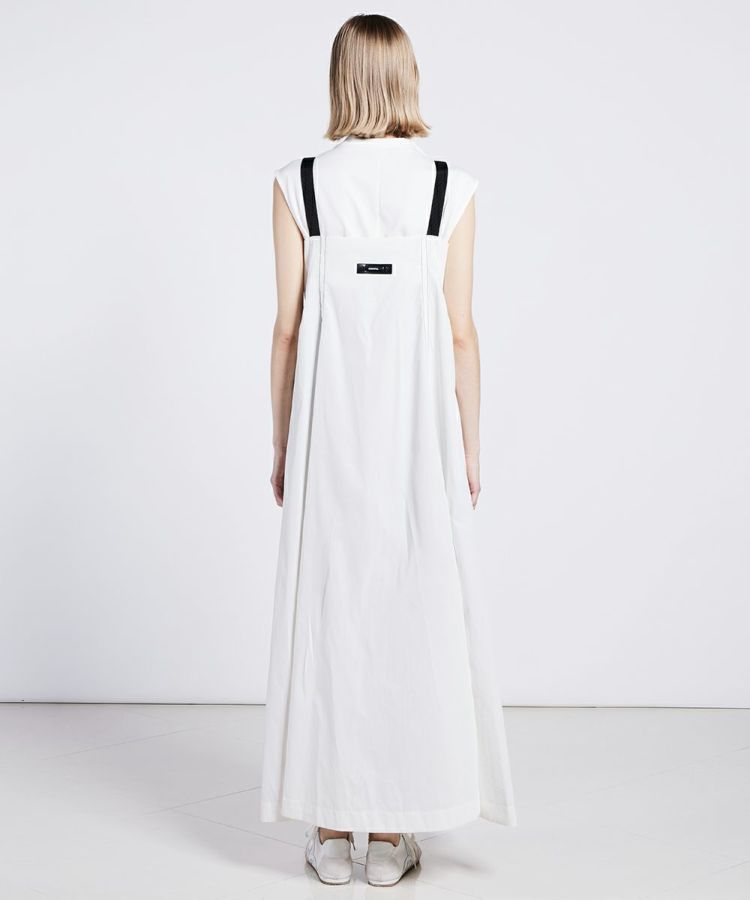 上品な光沢感がモードな佇まいを叶えてくれるワンピース。柔らかな素材感でイージーに着回せます。パサっとしたテントシルエットがリラクシンで、ボディラインを拾わず、大人のこなれ感を演出。肩紐はナイロンベルトで、スポーティーなアクセントをプラスしました。