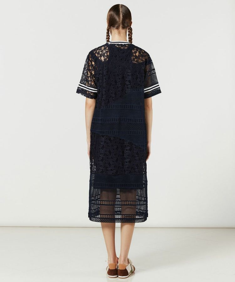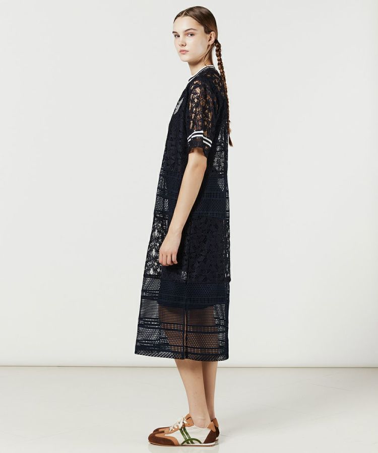 胸元の刺繍ワッペンや襟元のラインなど、今季らしいアイビーテイストを盛り込んだワンピース。涼しげなレース素材で抜け感を出すとともに、女性らしくトレンドライクに着用できるように仕上げました。また、異なるレースを組み合わせ、変化を出しているのもさりげないポイント。ゆったりとしたシルエットながらも、こだわりのディテールでラフになりすぎず、大人カジュアルに楽しめます。