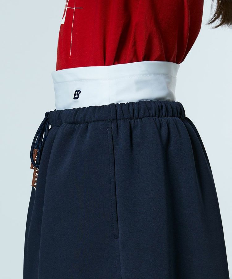 柔らかなタッチと、ほどよいハリ感を併せ持つダンボール素材を使用したスカート。ミディ丈のシルエットが、スポーティーな中にも上品な印象を与えます。ウエストはゴム仕様で、長時間の着用でも快適な穿き心地を実現。Tシャツを合わせるだけで、抜け感のあるスポーティースタイルが完成する一着です。