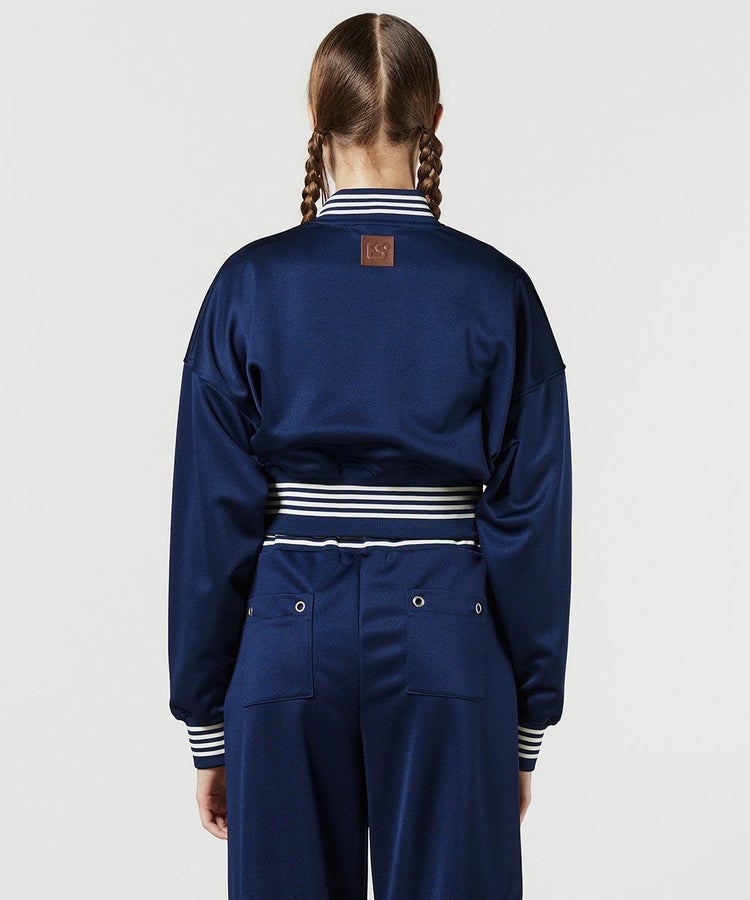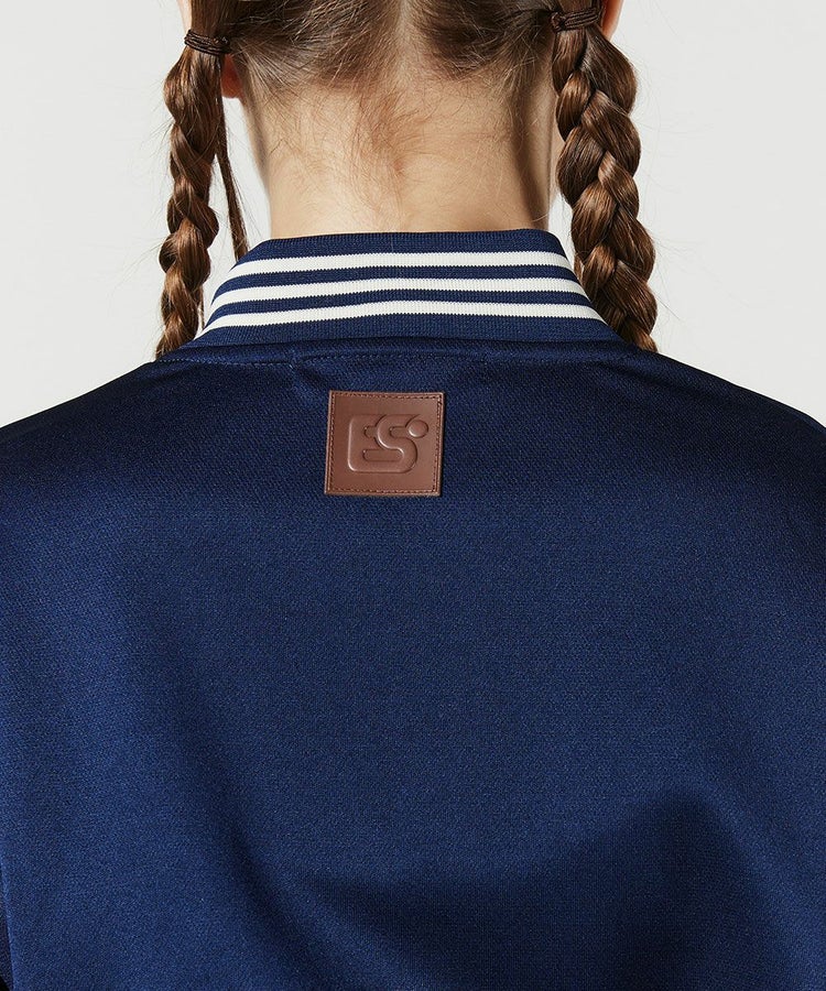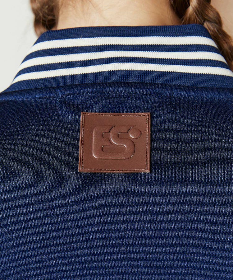 今季らしいアイビールックに取り入れたい、“ダサかわいい”ジャージ素材のブルゾン。どこかレトロなデザインを、スーパーショート丈で現代的に、ファッショナブルに仕上げました。ウエストのデザインはスリーラインがアクセントになり、スタイルアップ効果抜群。ジップや背中に施したこだわりのロゴパッチのディテールがさりげない高級感を出してくれます。