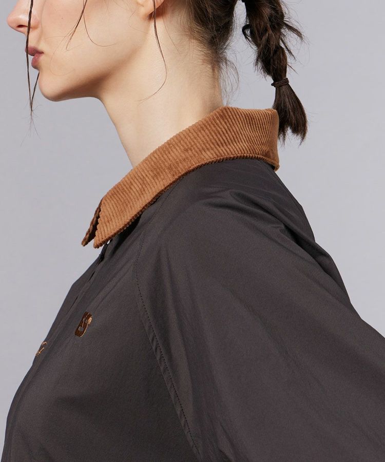 反発性に優れ、抜群の伸縮性を備えた快適な着心地のブルゾン。程よい立体感とふくらみのある素材感がシルエットに表情を与え、スタイリングを格上げしてくれます。襟元にはコーデュロイ素材をあしらい、クラシカルな雰囲気をさりげなくプラス。ショート丈のバランスが絶妙でパンツにもスカートにも合わせやすく、着回し力も抜群です。