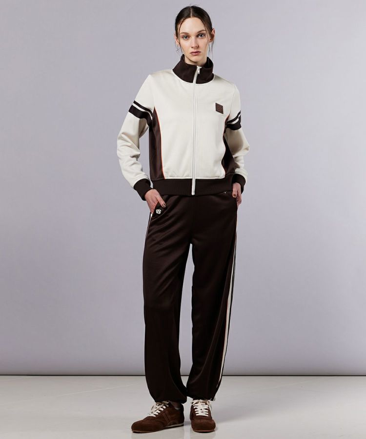 吸汗・速乾性に優れた高機能ポリエステルジャージ素材を使用したトラックジャケット。滑らかな肌ざわりと上品な光沢感が特徴で、スポーティーでありながらも高級感のある佇まいに仕上げました。オリジナルのレザースライダーやワッペンパッチが、ディテールにエレガンスを添え、スタイリッシュな印象をプラス。同素材のトラックパンツ(型番:2506271253)と合わせれば、セットアップで完成度の高い大人のスポーツミックススタイルが楽しめます。