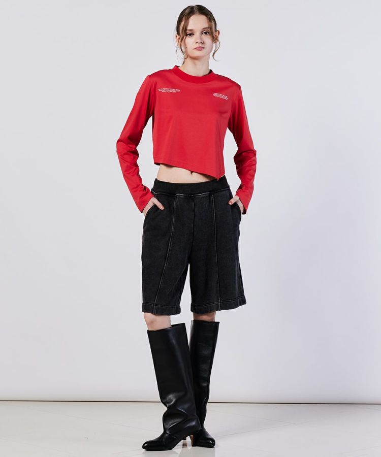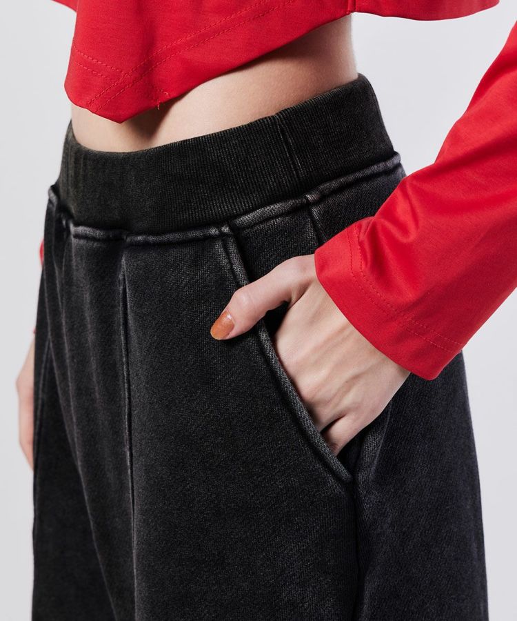 裏毛を顔料で染色し、ケミカルウォッシュ加工を施したショートパンツ。ヴィンテージ感のある風合いがかっこよく、センタープレスがきれいめカジュアルな佇まいを叶えてくれます。たっぷりとした肉感で暖かいので、秋冬のコーディネートにもぴったり。同素材のパーカー(型番:2508030244)とセットアップで楽しむのもおすすめです。