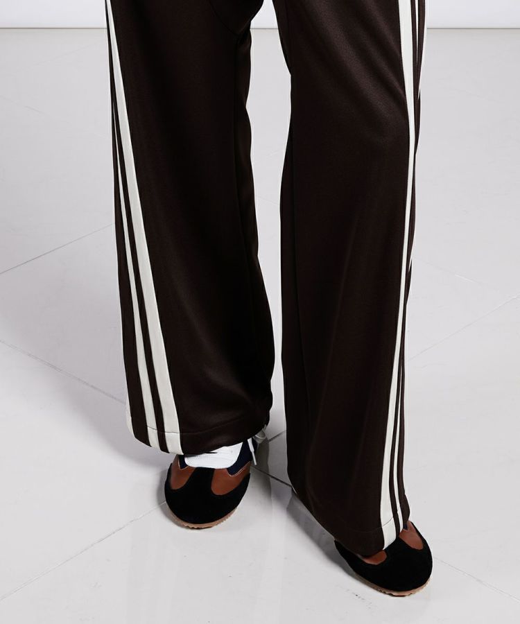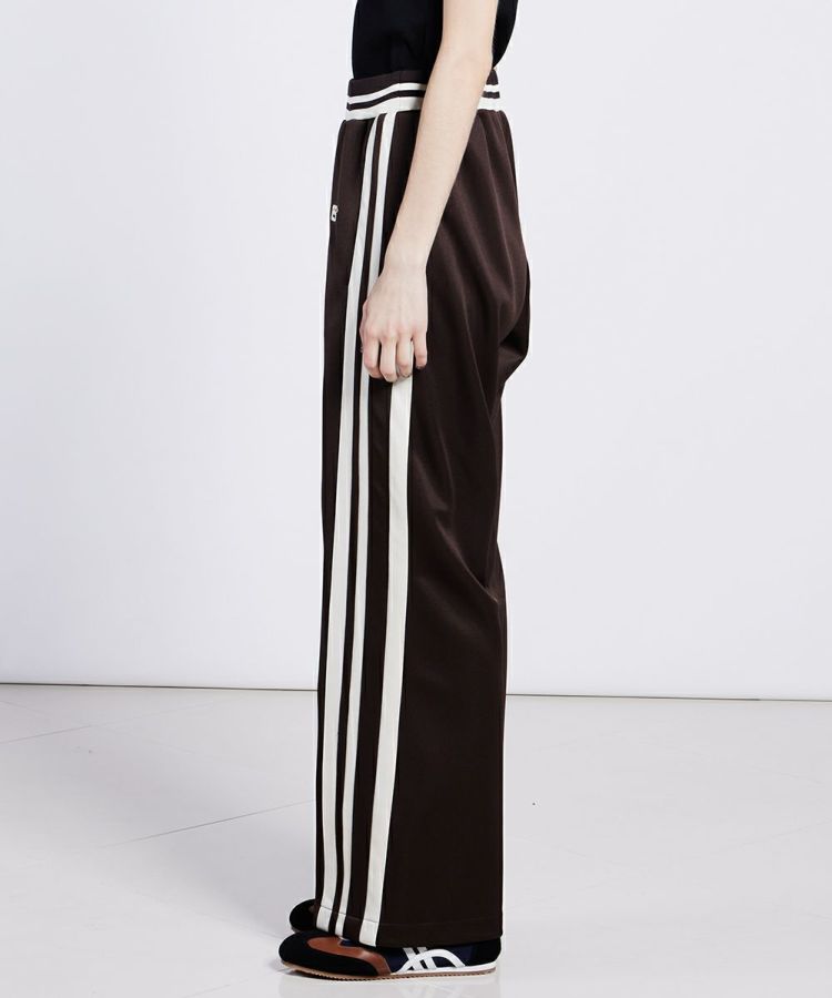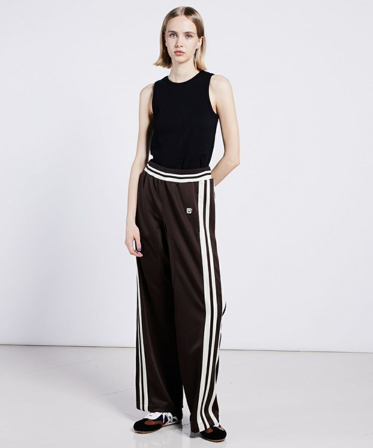 軽やかな艶とボリューム感のある、ブライトキングの定番素材を使用したトラックパンツ。穿き心地抜群のジャージー素材でありながらも、シルエットの美しさにこだわりました。大きく前振りにラインを切り替えることで、前から見た時に細見えするのがうれしいポイント。同素材のトップス(型番:2505050244)とセットアップで楽しむのもおすすめ。吸汗速乾機能付き。