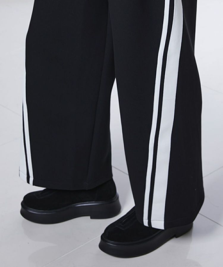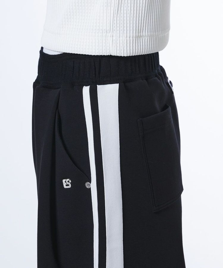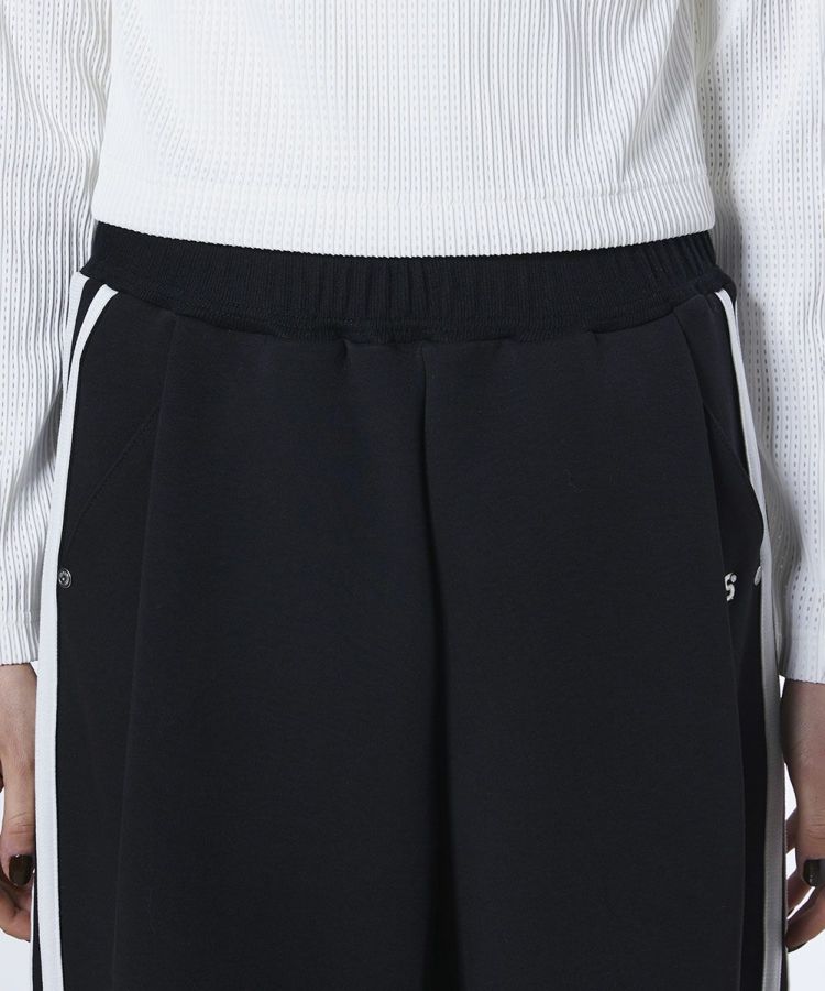 膨らみ感のあるダンボール素材を使用した、柔らかな肌ざわりのトラックパンツ。ラインを前振りに配したデザインが、スポーティーな中にも個性を感じさせる一枚です。ウエストはゴム仕様で、長時間の着用でも楽ちん。ワンタックを施すことで立体感をプラスし、カジュアルながらも上品な印象に仕上げました。