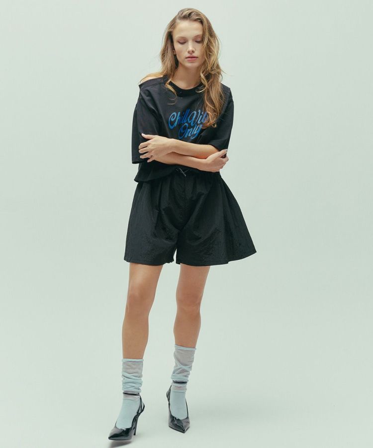 ボリュームのあるフレアシルエットが、フェミニンな印象を演出するキュロットパンツ。ハリと光沢を備えたタフタ素材にワッシャー加工を施し、奥行きのある表情に仕上げました。ウエストはゴム仕様で、動きやすく快適な穿き心地も魅力。パーカーやTシャツなどスポーティーなアイテムとも好相性で、アクティブなシーンにも活躍する一着です。