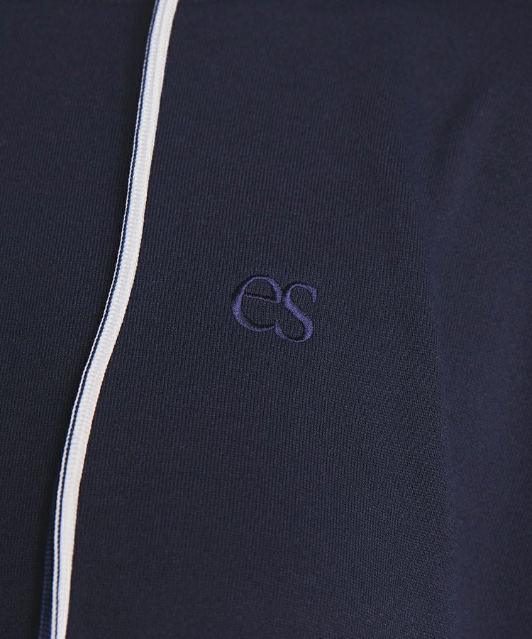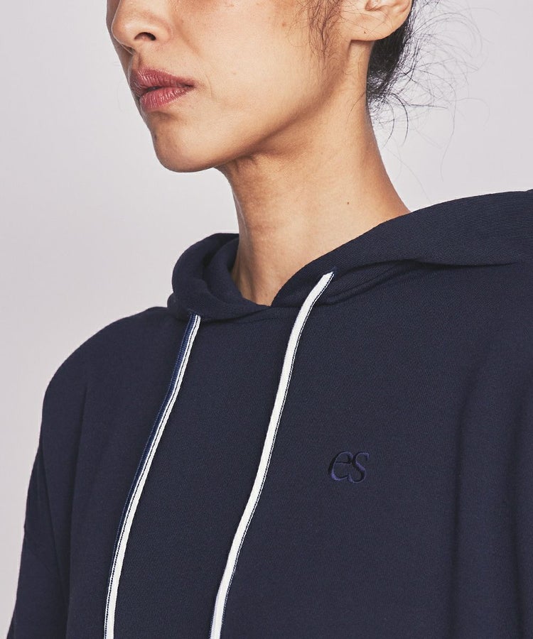 きれいめな印象の半袖パーカー。リサイクルポリエステル糸を使用したサステナブル素材で、綿のような風合いがありながらも、吸水速乾性と形態安定性に優れています。ポリエステルの裏毛の性質を活かしてプリーツ加工を施しているのもポイント。コーディネートのアクセントになり、カジュアルでありながらもフェミニンなムードに着られます。オリジナルのスピンドルがスクエアタイプなのもこだわりです。
