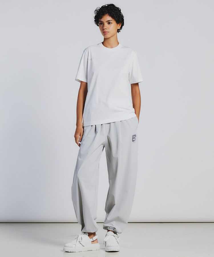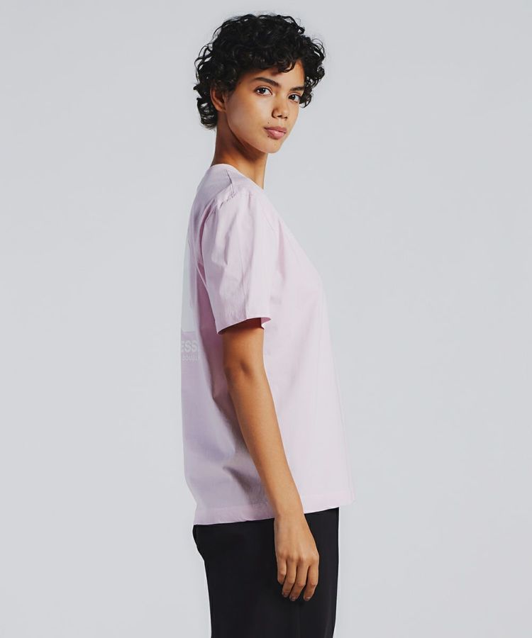バックにビッグサイズのロゴをあしらったTシャツ。淡いカラーリングが上品でシンプルなので、どんなボトムにあわせても決まりやすく、着まわし力に優れた一枚です。また、ハリコシのある生地ながらもソフトな質感に仕上げた、絶妙な風合いの天竺素材も魅力。肌触り良く、着心地は抜群です。シリコン風のラバープリントは、何度もプリントを重ねることで立体感を出しています。