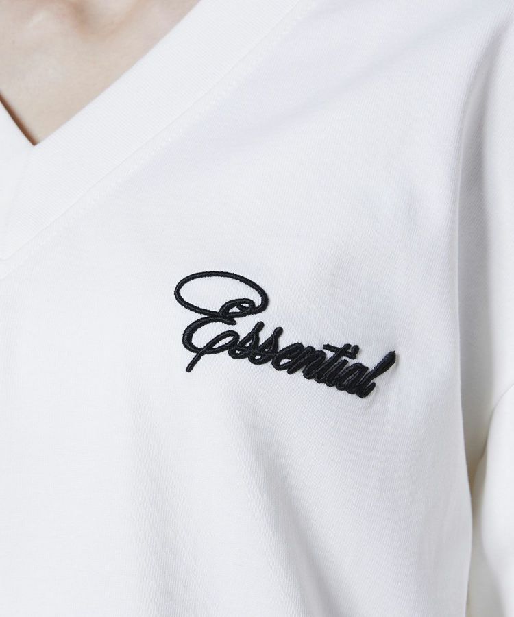 Vネックがデコルテラインを美しく引き立てるトップス。上質なコットンの天竺編み素材を使用し、ほどよいハリ感で上品な印象に仕上げました。耐久性にも優れており、洗濯を繰り返しても風合いを保てるのが嬉しいポイント。袖に施したギャザーがさりげないアクセントとなり、ゆったりとしたシルエットがリラクシンなムードを演出します。
