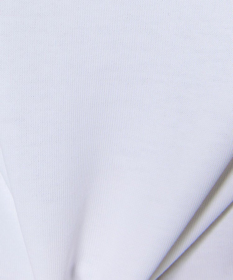バックスタイルに大胆なカッティングを施し、さりげない肌見せを楽しめるTシャツ。フロントには英文字グラフィックを配し、シンプルな中にアクセントを効かせました。ショート丈のバランスが取りやすいシルエットで、さまざまなボトムスと好相性。デザイン性のある一枚は、同系色のボトムスと合わせた統一感のあるスタイリングもおすすめです。