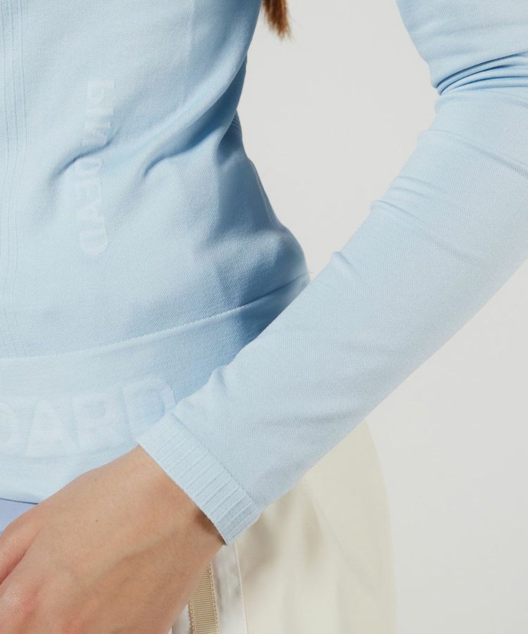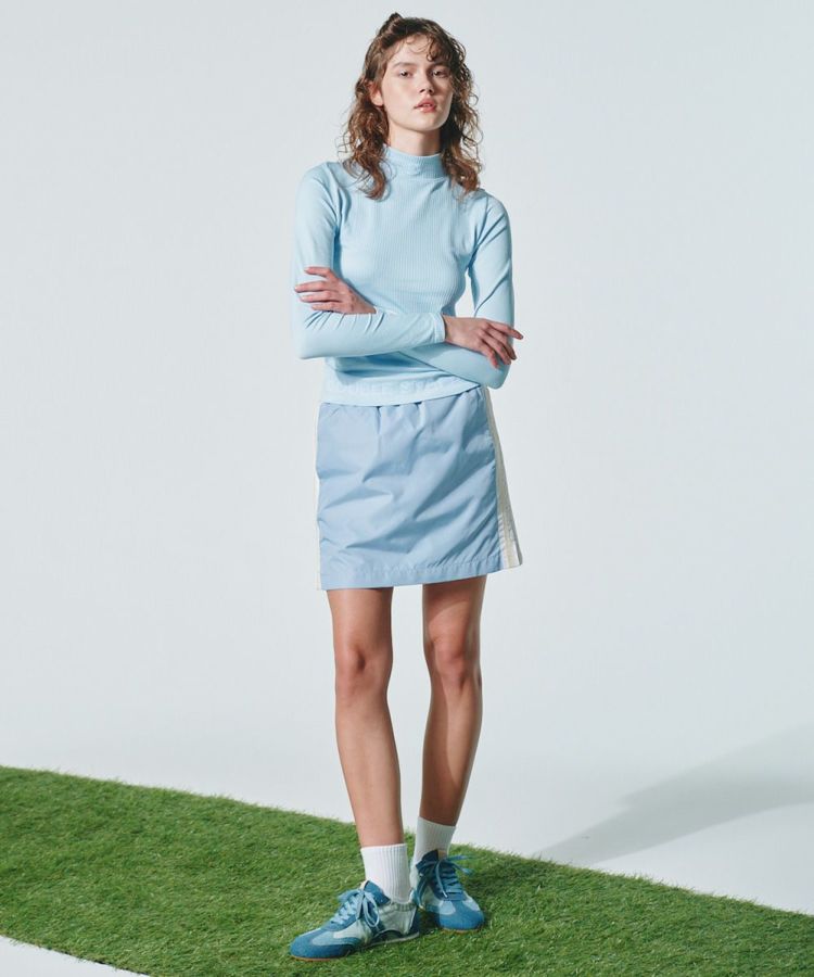 爽やかなカラーリングでスポーツライクに仕上げたプルオーバー。コンパクトなハイネックがおしゃれです。ウエストの裾だけでなく、お腹の左右にもロゴを施すことでインしてもアウトしてもワンポイントになるのがうれしいポイント。ストレッチ性に優れており、動きやすさも抜群なのでデイリーでも重宝する一枚。