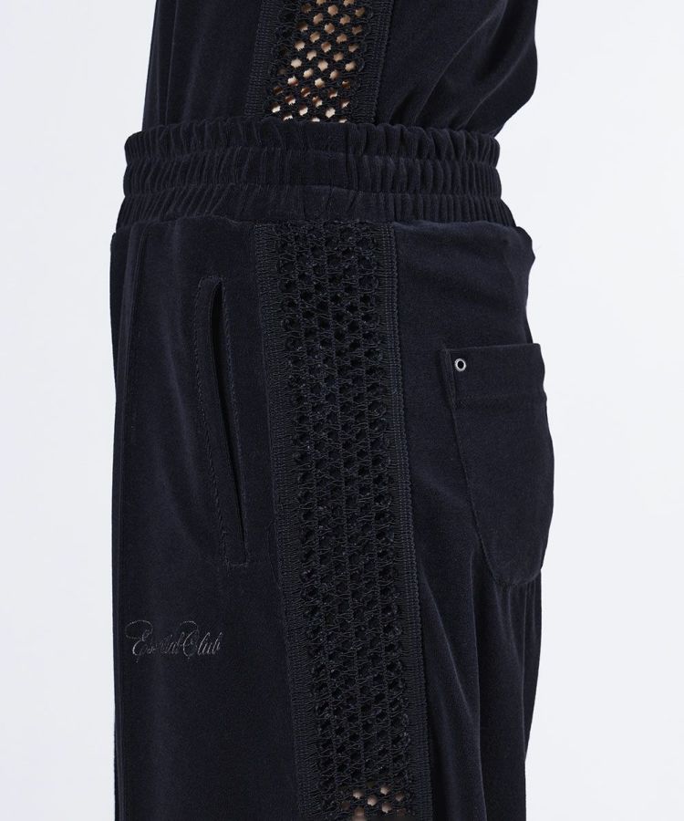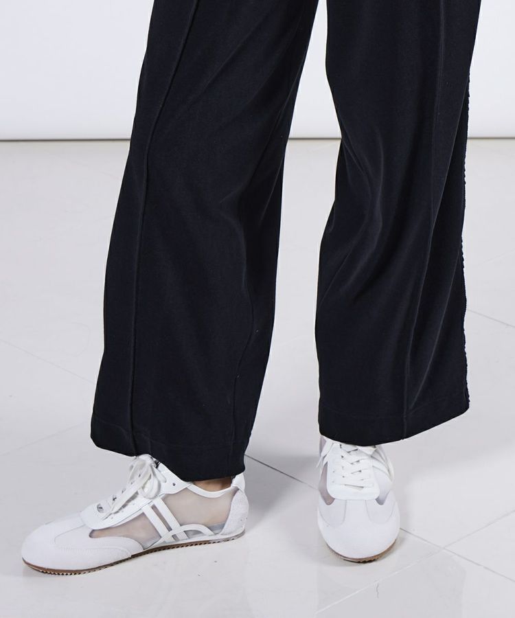 ゆったりとしたバレルシルエットが、トレンド感を演出するパンツ。心地よい肌ざわりのパイル生地を採用し、快適な穿き心地を実現しました。サイドラインにはゴムレースを施し、さりげない肌見せが女性らしいエッセンスに。同素材のトップス(型番:2508120253)と合わせたリラクシンなセットアップスタイルもおすすめです。