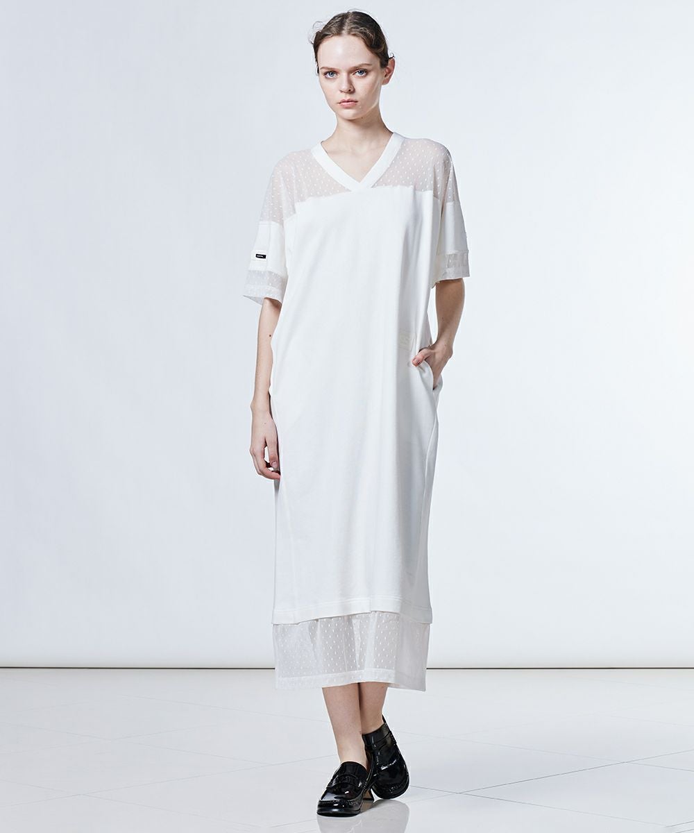 ESSENTIAL / 裏毛ドットチュールワンピース