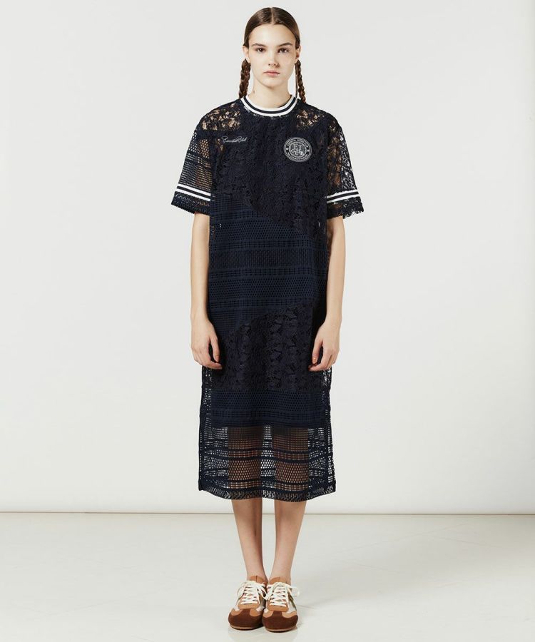 胸元の刺繍ワッペンや襟元のラインなど、今季らしいアイビーテイストを盛り込んだワンピース。涼しげなレース素材で抜け感を出すとともに、女性らしくトレンドライクに着用できるように仕上げました。また、異なるレースを組み合わせ、変化を出しているのもさりげないポイント。ゆったりとしたシルエットながらも、こだわりのディテールでラフになりすぎず、大人カジュアルに楽しめます。