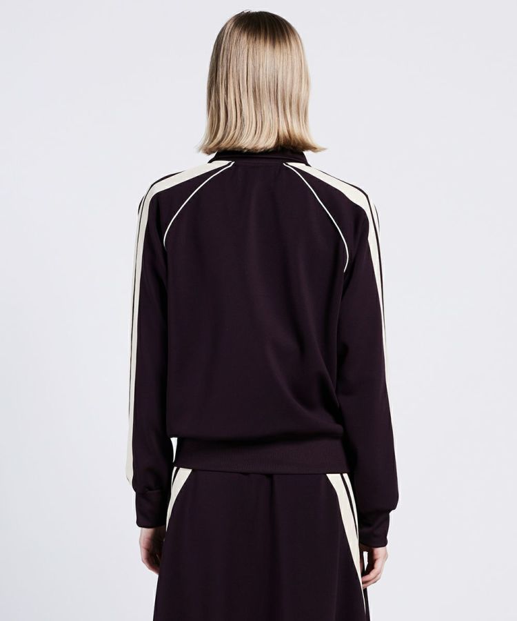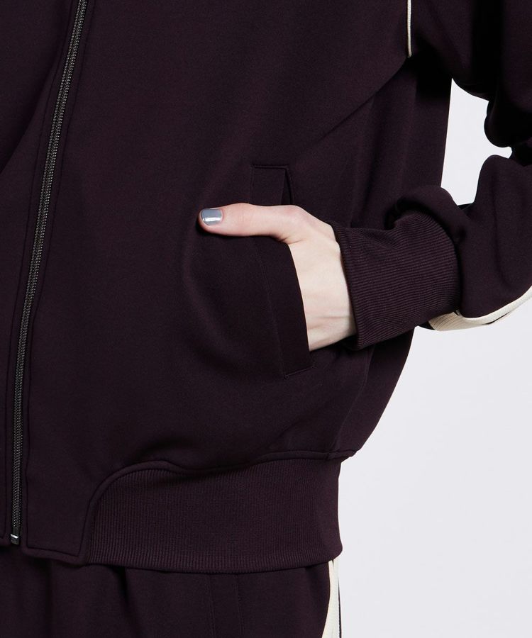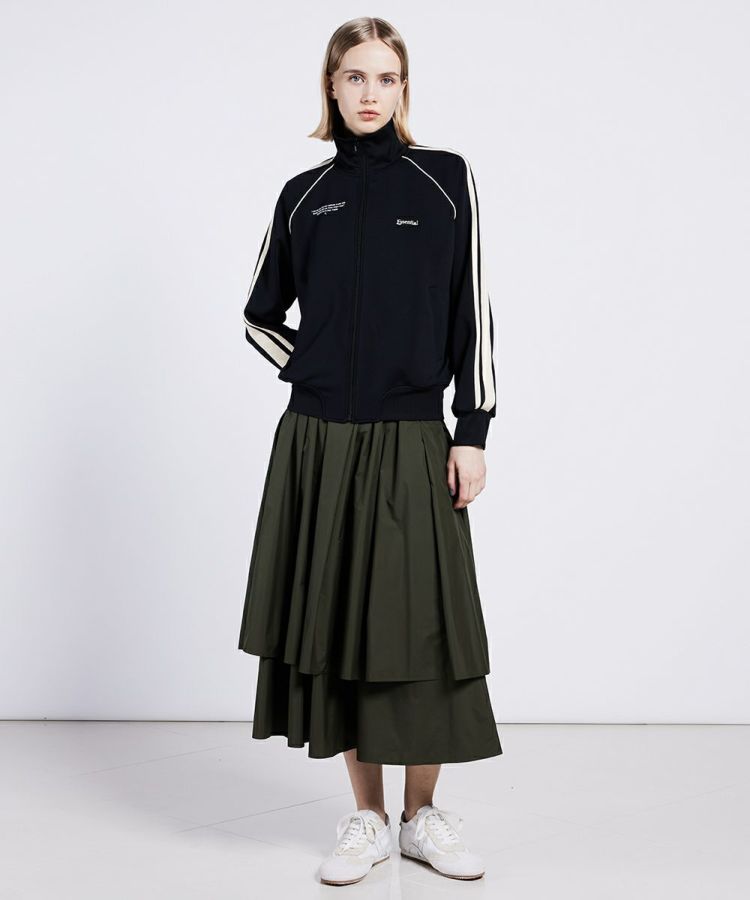 クラシカルなカラーが新鮮なトラックジャケット。マットな質感と、同色のリブ使いがファッショナブルです。ストレッチ性・着心地・型崩れしにくい・紫外線遮断率が高いなど、機能性に富んだダンボール生地も魅力的。自宅での洗濯も可能なのもうれしいポイントです。同素材のスカート(型番:2502071244)とセットアップで着ると、都会的なスポーツMIXコーデが楽しめます。