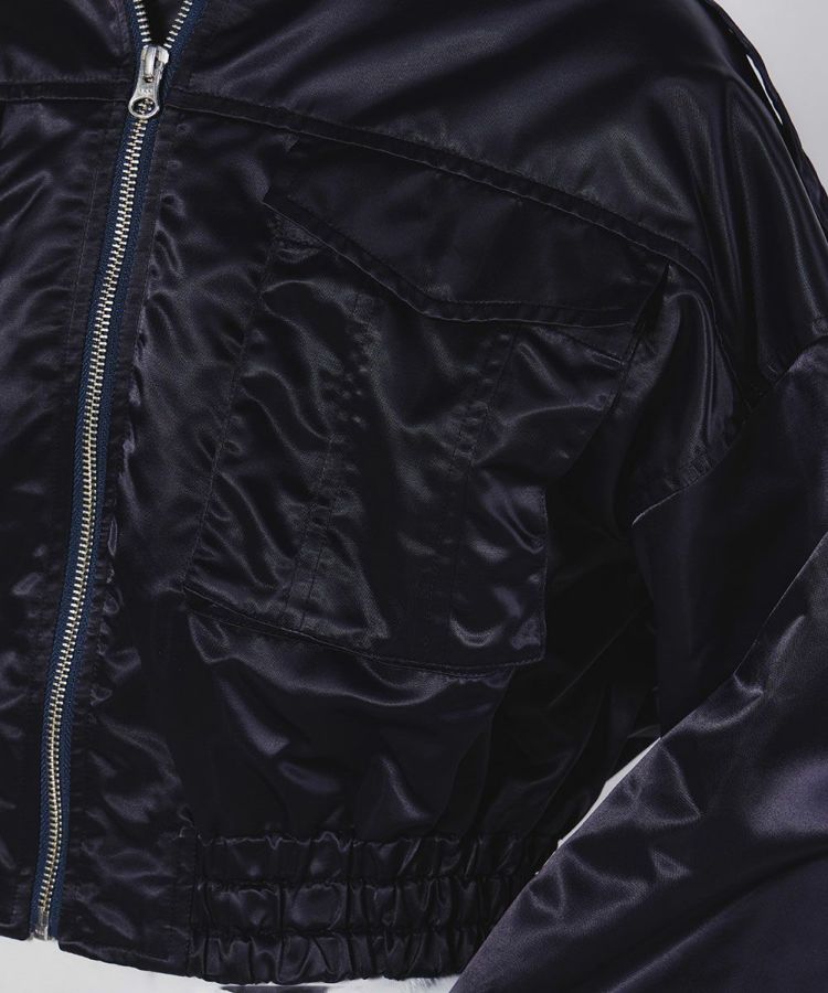 程良い厚みと柔らかさが特徴のナイロンツイル素材を使用したブルゾン。軽量のナイロン素材なので、無骨になりがちなミリタリーアイテムでもしなやかな素材感に仕上げました。高級感のある光沢や快適な着心地もポイント。また、ディテールをしっかりと盛り込むことでデザイン性を高め、ショート丈でコーディネート映えするアイテムです。