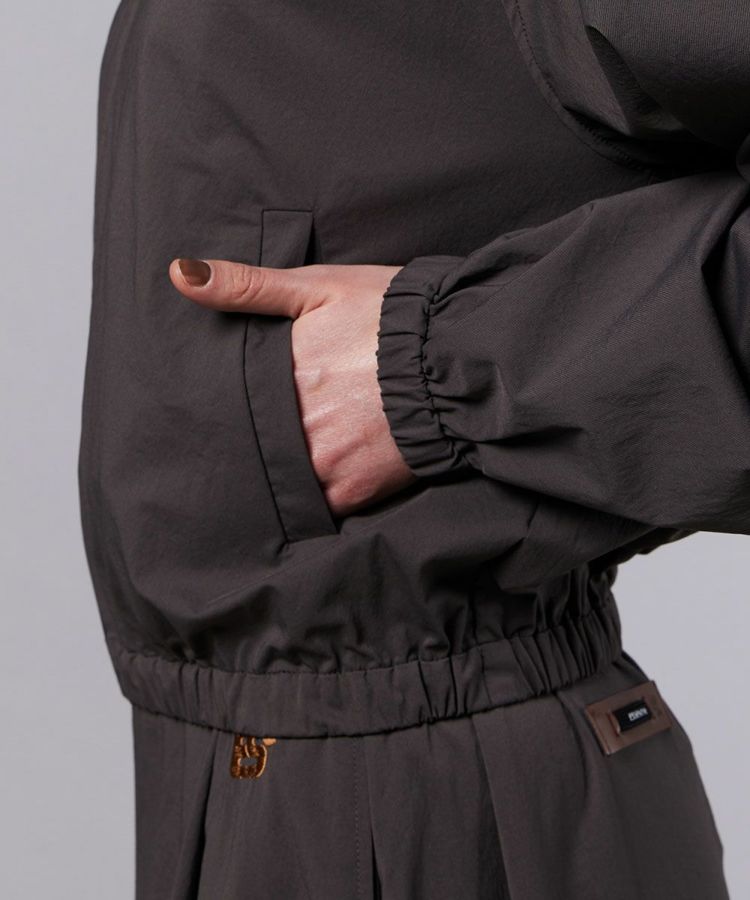 反発性に優れ、抜群の伸縮性を備えた快適な着心地のブルゾン。程よい立体感とふくらみのある素材感がシルエットに表情を与え、スタイリングを格上げしてくれます。襟元にはコーデュロイ素材をあしらい、クラシカルな雰囲気をさりげなくプラス。ショート丈のバランスが絶妙でパンツにもスカートにも合わせやすく、着回し力も抜群です。
