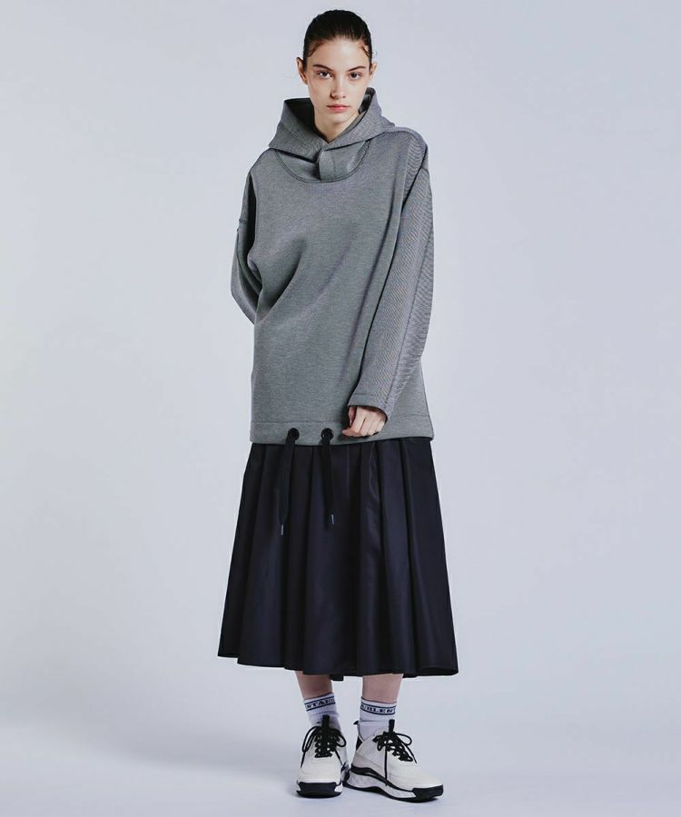 ゆったりとしたシルエットに仕上げたパーカー。程よい肉感で、袖にもゆとりがあるためインナーに重ねてもごわつかず、快適に着こなせるのが魅力です。フードが大きめで小顔効果を狙えるのもうれしいポイント。細身のパンツやショート丈のボトムに合わせるとバランスが良く、メリハリのあるコーディネートが楽しめます。