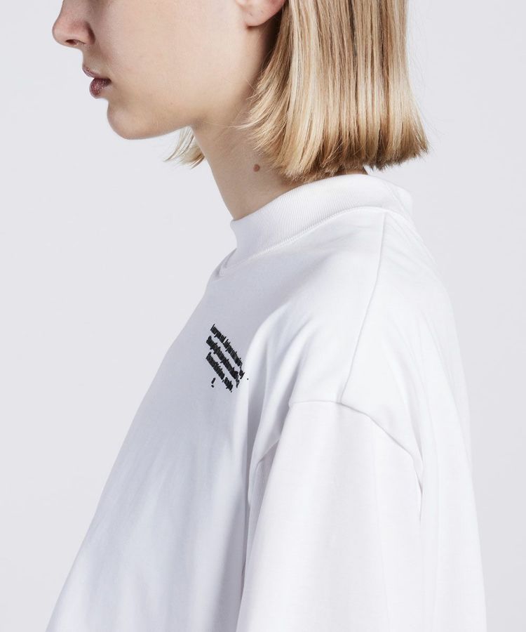 しっかりと肉感のあるヘビーウェイトな生地で作ったTシャツ。微強撚糸を引き揃えて編んだ天竺素材を使用し、極限までハイゲージで編むことで、透け防止、なめらかな表面感を実現しました。また、絶妙な光沢感があるため、ラフでカジュアルでありながら上品な印象に仕上げました。ペプラムデザインとウエストマークでスタイルアップ効果も抜群。フェミニンなコーデにも合わせやすい一枚です。
