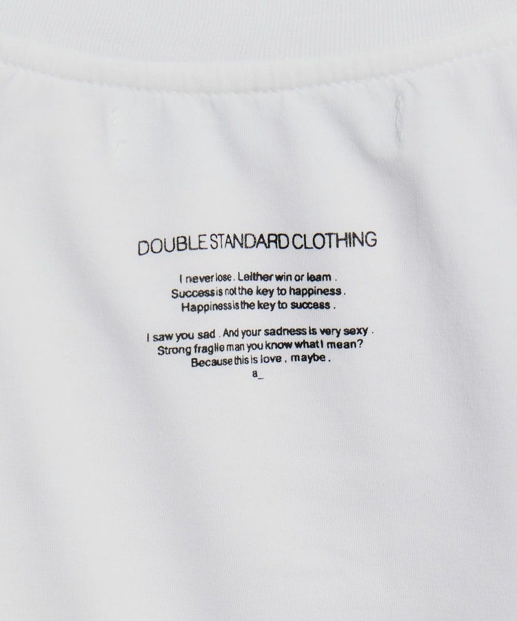 裾が変形デザインになったショート丈のTシャツ。コンパクトなフォルムがキュートで、手持ちのパンツやスカートに合わせるだけで大人カジュアルコーデが完成する一枚です。胸元のクラッシュハートの刺繍もアクセントに。バックスタイルにもメッセージをのせ、夏のアップヘアスタイルでもかわいく見えるのがうれしいポイントです。